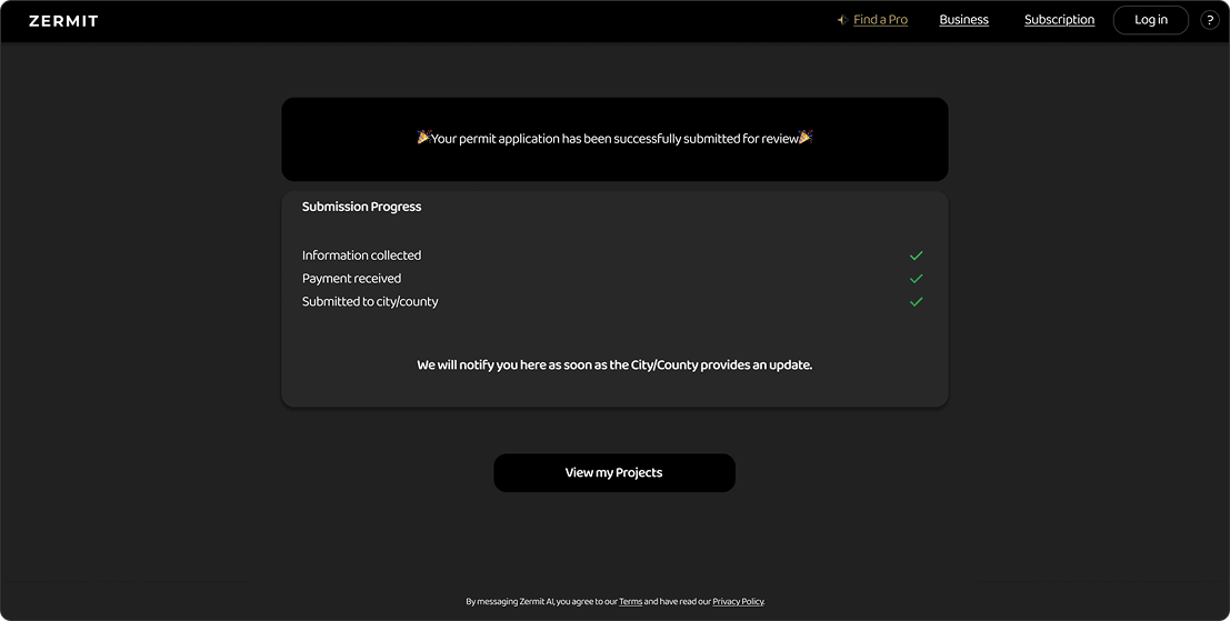 Permit applications often require repetitive documentation and administrative work. Zermit AI automates the preparation of eligible permits by organizing project details, validating requirements, and preparing submission information.